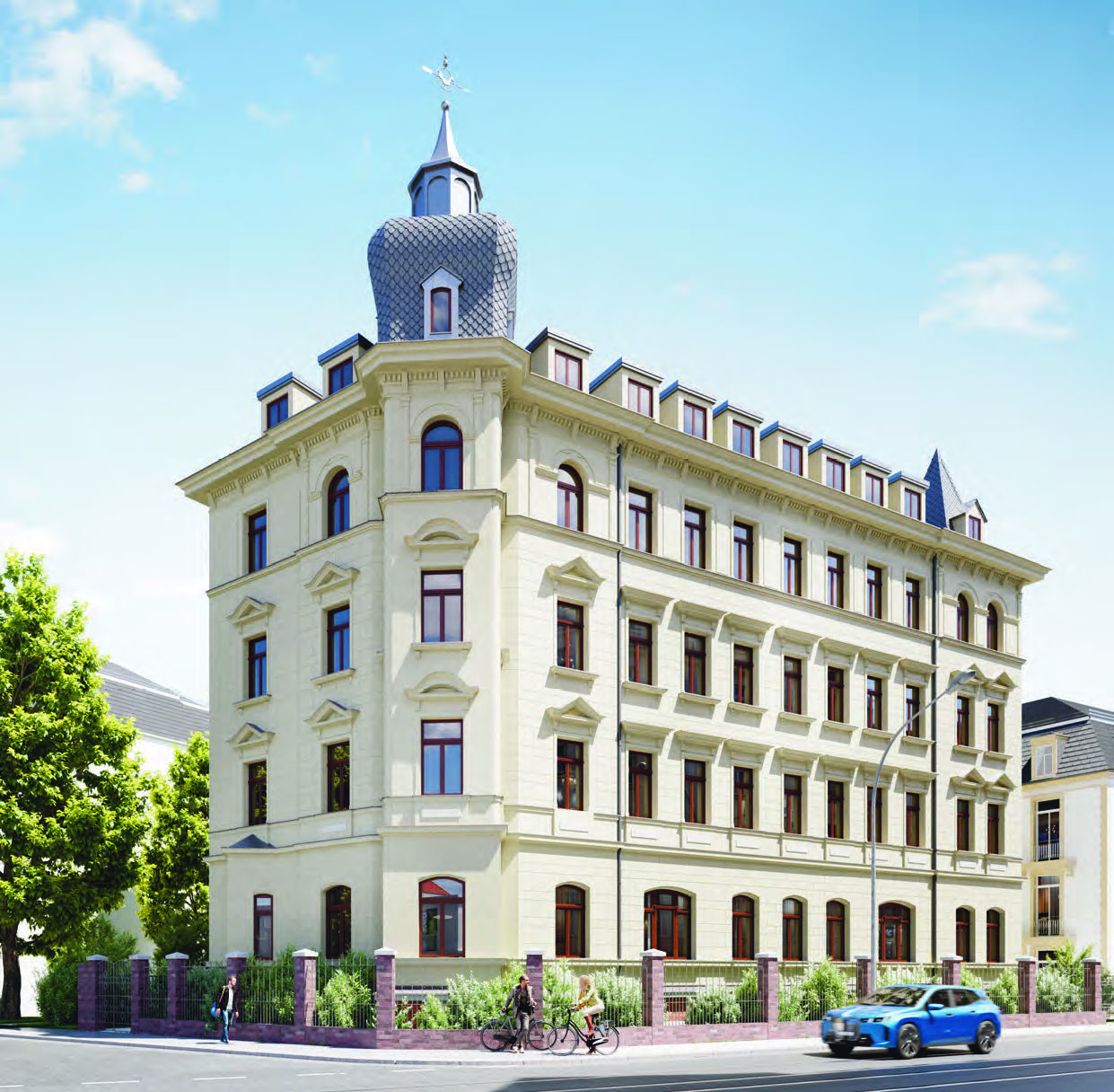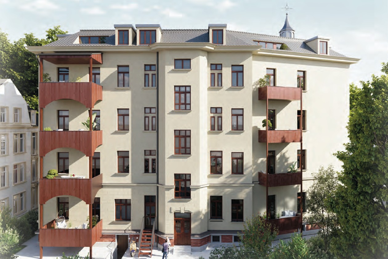 Im Rahmen einer umfassenden denkmalgerechten Sanierung wird das Objekt behutsam revitalisiert und nach modernen Wohnstandards ausgebaut. Ziel ist die Schaffung hochwertiger Wohnungen mit optimaler Vermietbarkeit unter gleichzeitiger Bewahrung der historischen Bausubstanz. Die charakteristische Fassadengliederung, originale Treppenhäuser, Stuckelemente sowie historische Türen werden soweit möglich erhalten und aufwendig restauriert.