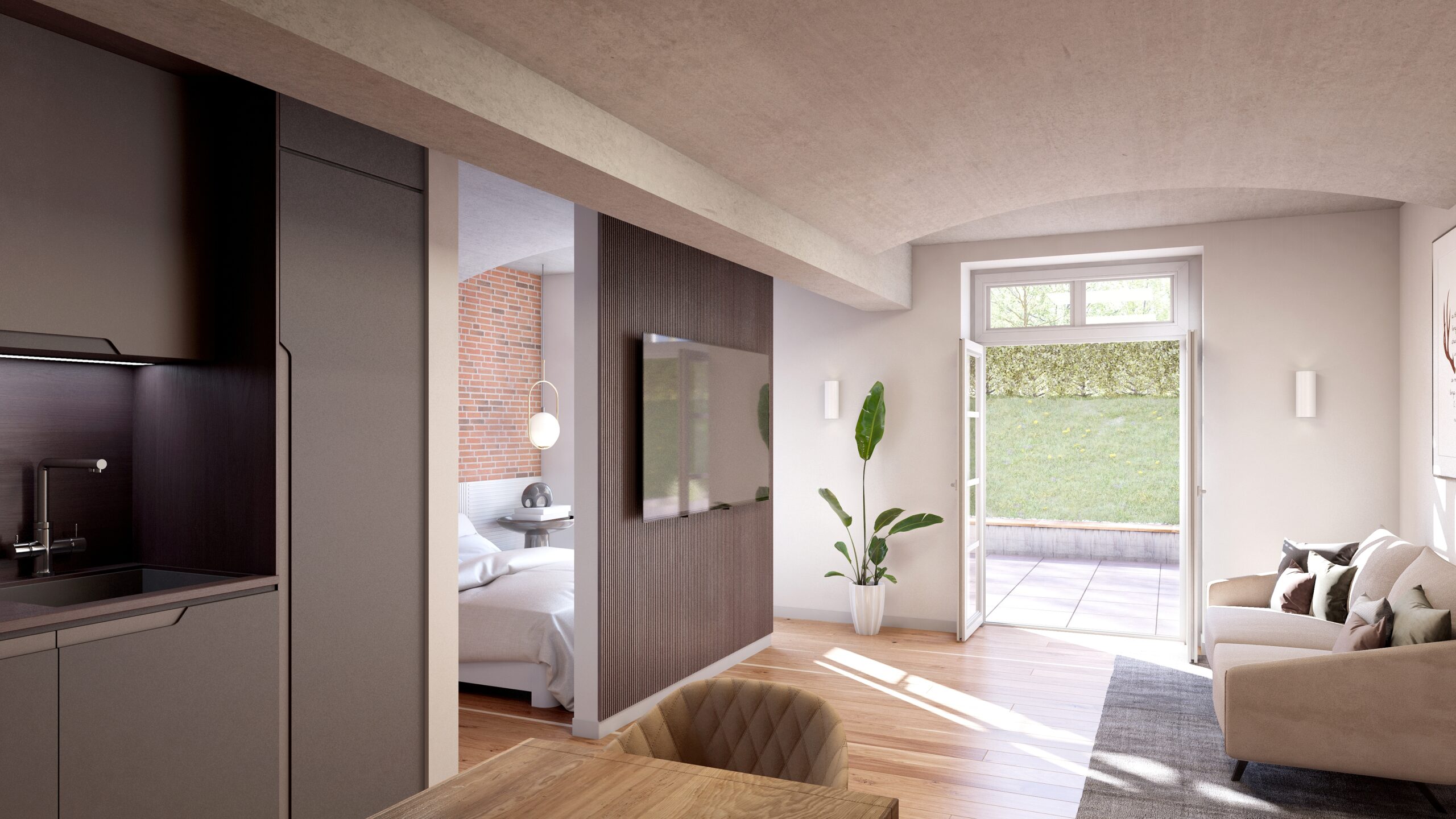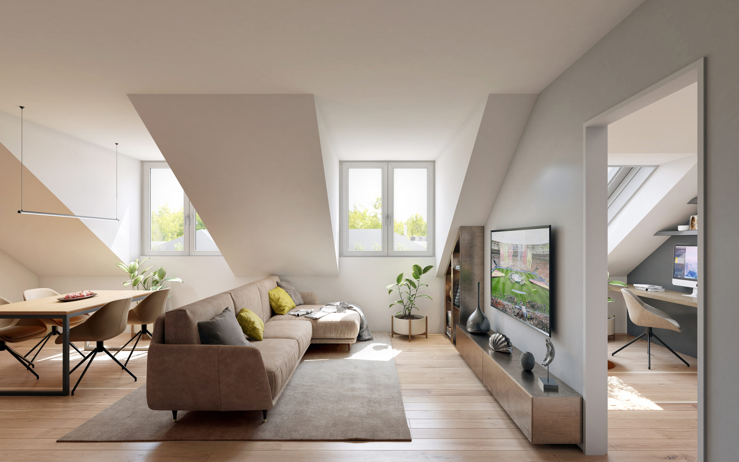 Auf dem Gelände der ehemaligen Kavallerieschule aus dem Jahr 1936 entstehen in denkmalgerecht sanierten Mannschaftsgebäuden 93 Wohneinheiten mit Größen zwischen 30 und 81 Quadratmetern. Die charakteristischen Klinkerfassaden, großzügigen Raumhöhen und Walmdächer bleiben erhalten und werden durch zeitgemäße Grundrisse und hochwertige Ausstattung ergänzt.